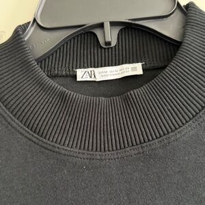 Stylish black top with ribbed collar. Perfect for any occasion.