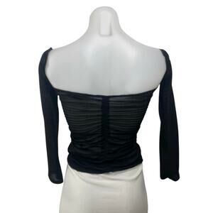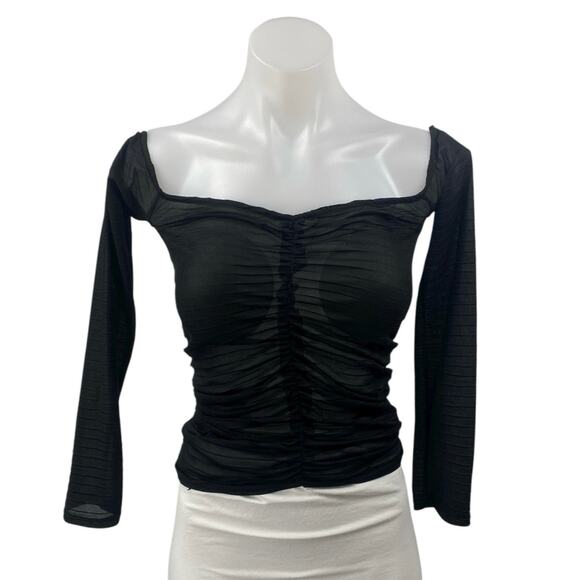 Zara Black Ruched Chiffon Sheer Square Neck Long Sleeve Crop Blouse Top Size S