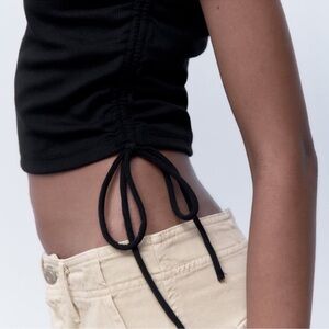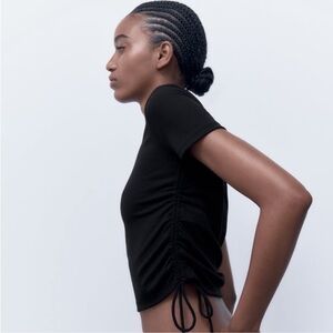 Zara Black Ruched Ribbed Top