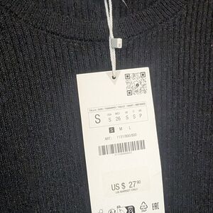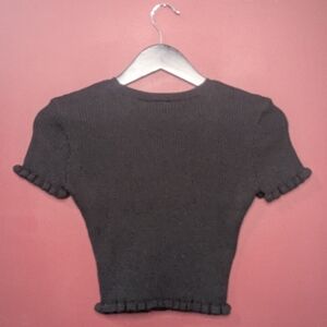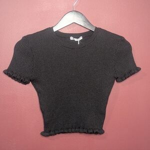 Zara Black Ruffle Hem Ribbed Crop Top