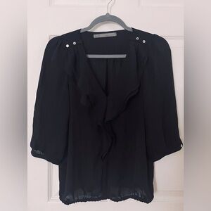 Zara Black Ruffled 3/4 Length Blouse XS