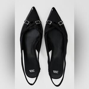 Zara Black SLINGBACK BUCKLED FLAT SHOES