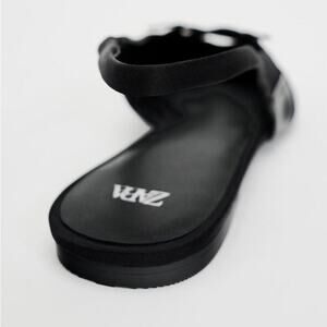 Zara Black SLINGBACK BUCKLED FLAT SHOES Size 7.5