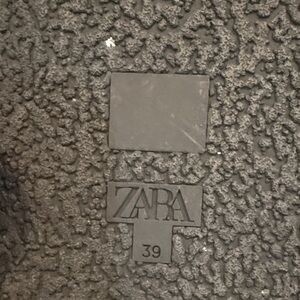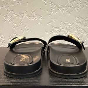 Elegant black ZARA sandals with a bold gold accent. Ideal for casual and formal wear.
