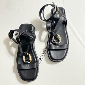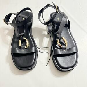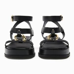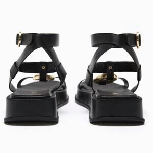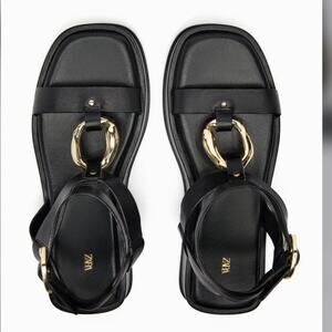 Zara Black Sandals with Gold Buckle