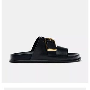 Zara Black Sandals with Gold Buckle