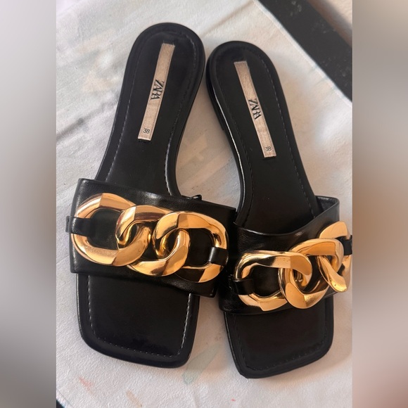 Zara Black Sandals with Gold Chain Accent