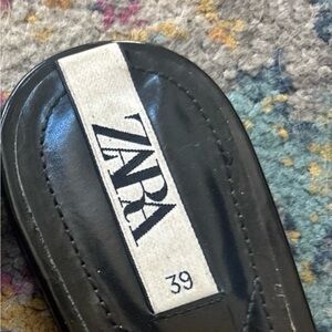 Step out in style with Zara's chic black slides, featuring elegant pearl embellishments. Perfect for adding a touch of sophistication to any outfit.