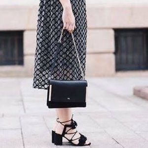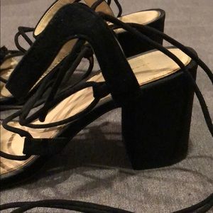 Elegant black sandals with tassel accents. Strappy design. Perfect for any occasion.