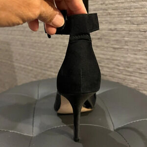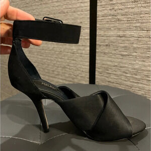Zara Black Sateen ankle strap party heels size 6 1/2