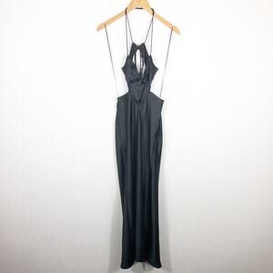 Zara Black Satin Cut Out Slip Maxi Dress Small Tie Back Cocktail Formal