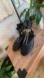 These Ballet Ankle Wrap Mules from ZARA are constructed in Black satin fabric and rubber bottom sole. They feature a round toe box with bow detail, flat ribbon ankle wrap adjustable tie straps, padded insole and a ballet flat mule style silhouette. These are classic, feminine, balletcore, preppy, minimalist, dark romantic, whimsical, going out, goth, cosplay vibes.