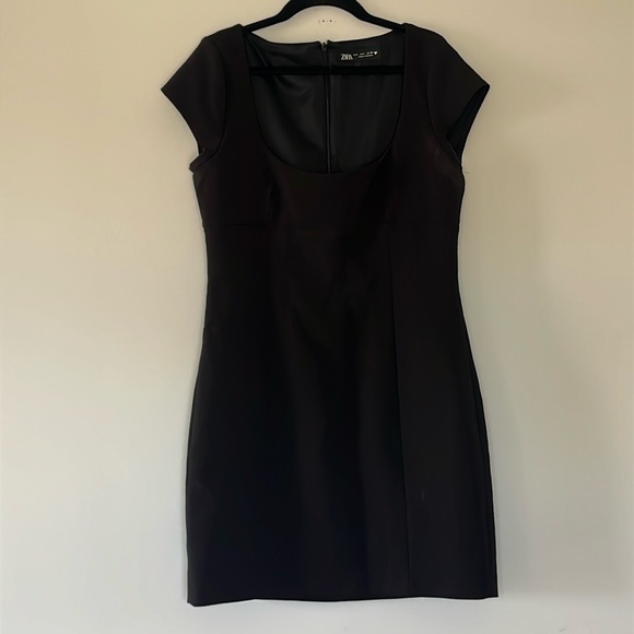 Zara Black Scoop Neck Stretch Mini Dress - L