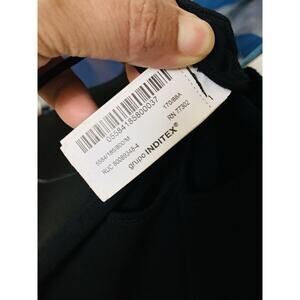 The Zara Black Sculpt Fabric Strapless Bodysuit in women's size medium is a stylish and versatile piece perfect for various occasions. This bodysuit features a halter neckline, snap closure, and button accents, making it easy to wear for travel, parties, or casual outings. Made from polyester and polyamide with a stretchy material, it offers a comfortable fit and is machine washable for easy care. The classic black color and strapless design add a touch of sophistication to your wardrobe, while the sleeveless style and solid pattern make it a timeless addition.