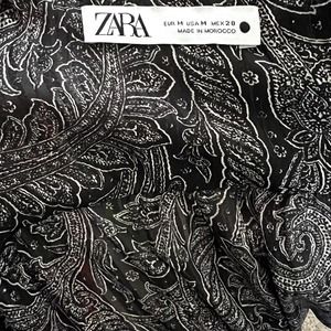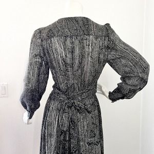 Zara Black Semi Sheer Paisley print wrap full length Dress - Size M
