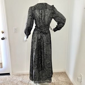 Black Semi Sheer Paisley print wrap full length Dress - Size M