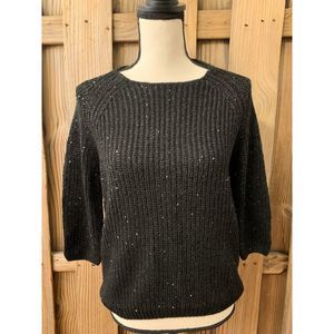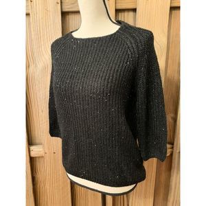 Zara Black Sequin Boat Neck 3/4 Sleeve Sweater Womens S