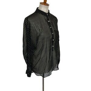 Zara Black Sheer Blouse Small Button Down Officewear Y2K