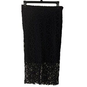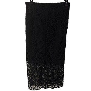 Zara Black Sheer Lace Detail Pencil Midi Skirt Size XSmall