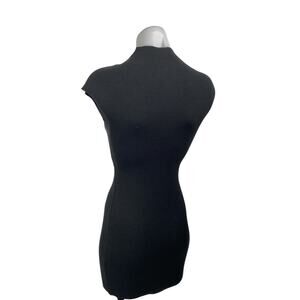 Zara Black Short Cap Sleeve Mock Neck Knit Sculpt Sweater Mini Bodycon Dress S