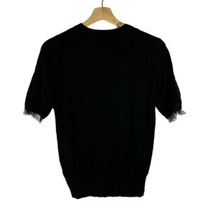 Zara Black Short Sleeve Crewneck Polka Dot Mesh Trim Sweater M