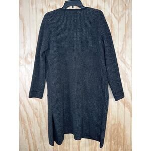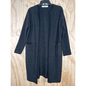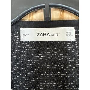 Zara Black Silver Metallic Knit Open Cardigan Size Small Long Pockets Side Slits