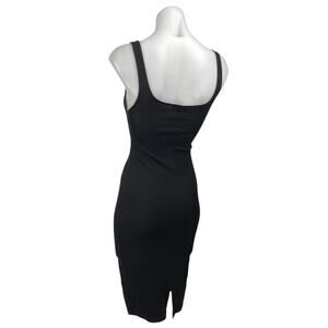 Zara Black Sleeveless Square Neck Back Slit Stretch Tank Midi Bodycon Dress Sz S