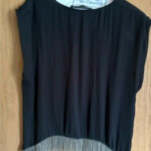 Zara Black Sleeveless Tank with Fringe Detail