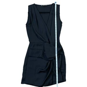 Step into sophistication with this Zara jumpsuit, perfect for a night out. The sleek black design features a sleeveless, V-neck style that flatters with a sheath silhouette. A wrap and tie front detail adds a touch of elegance and ensures a tailored fit.