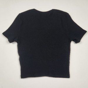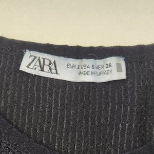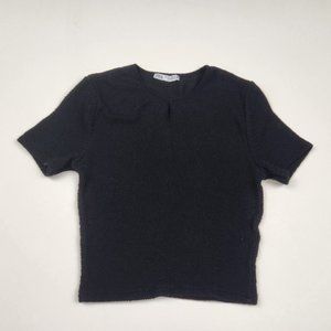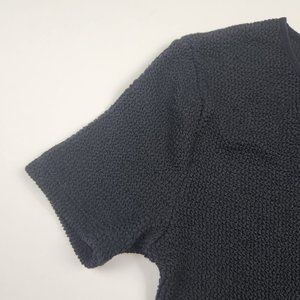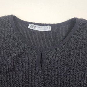 Zara Black Smocked Keyhole Short Sleeve Top sz S