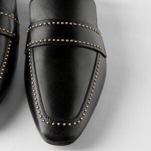 Zara Black Soft Leather Studded Loafer US 7.5 /EUR 38