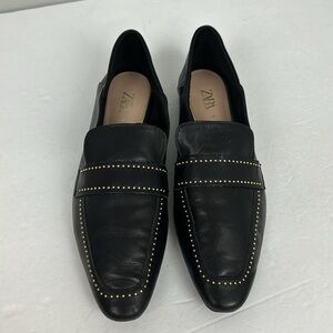 Zara Black Soft Leather Studded Loafer Sz 7.5