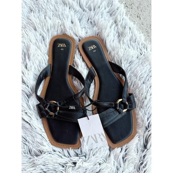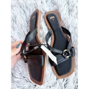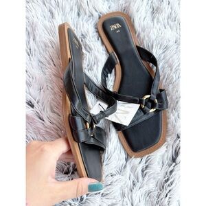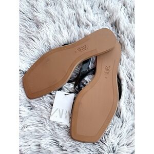 Zara Black Square Toe Flat Sandals