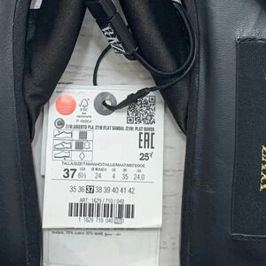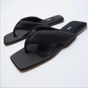 Zara Black Square Toe Quilted Slides Thong Sandals Flip Flop Summer