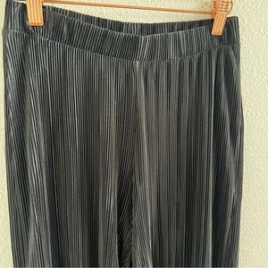 Zara Black Straight Flare Semi Sheer Black Vertical Accordion Crinkle Pants. Elastic waist, pull on.