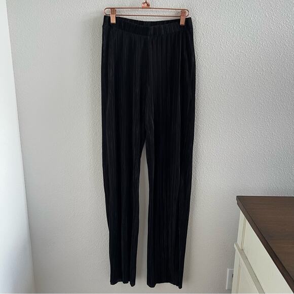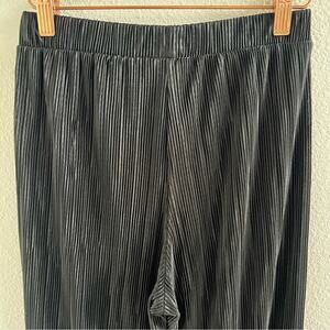 Zara Black Straight Flare Semi Sheer Black Vertical Accordion Crinkle Pants. Elastic waist, pull on.