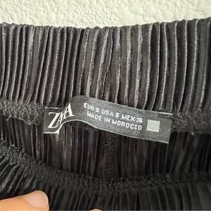 Zara Black Straight Flare Semi Sheer Black Vertical Accordion Crinkle Pants S