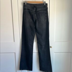 These black straight jeans from Zara offer a timeless silhouette with their high-rise design. Crafted from a structured, non-stretch denim, they provide a classic and polished look. Ideal for any occasion, these jeans are a versatile addition to any wardrobe.