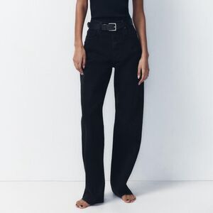 Zara Black Straight Leg Jeans Size 2 High Rise Long Length New with Tags