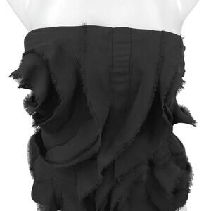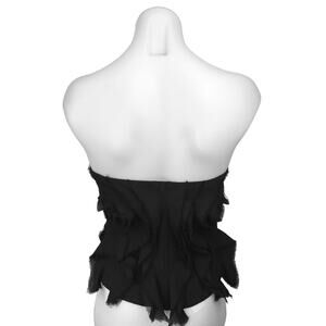 Zara Black Strapless Scalloped Tulle Ruffle Frayed Fringe Tube Crop Top Size S