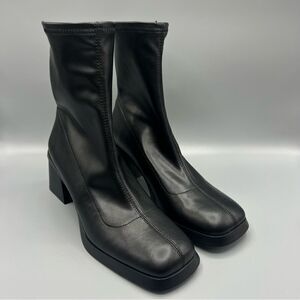 Zara Black Stretch Block Heel Ankle Boots. New!