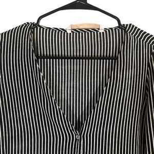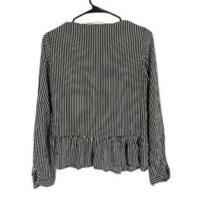 Zara Black Striped Peplum V-Neck Button Front Collared Blouse Women Sz XS