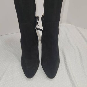 Zara Black Suede Over the Knee Boots Block Heel Women's Size 7.5 US / 38 EU