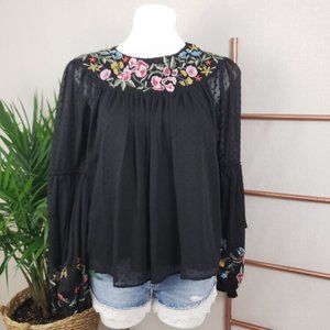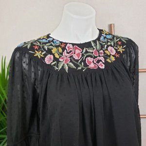 Zara Black Swiss Dot Embroidered Swing Top (XS)