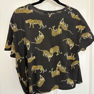 Zara Black Tee with Gold Leopard Print