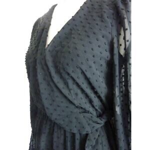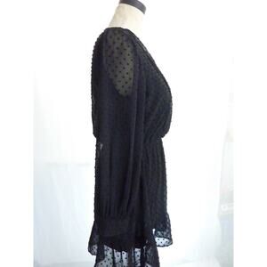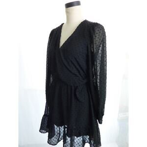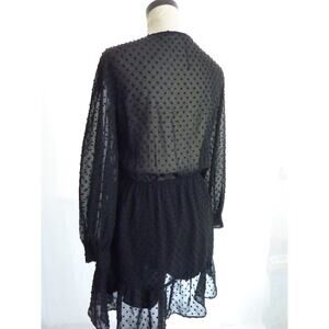 Zara Black Textured Dot Faux Wrap Dress Size XS Sheer Chiffon Long Sleeve