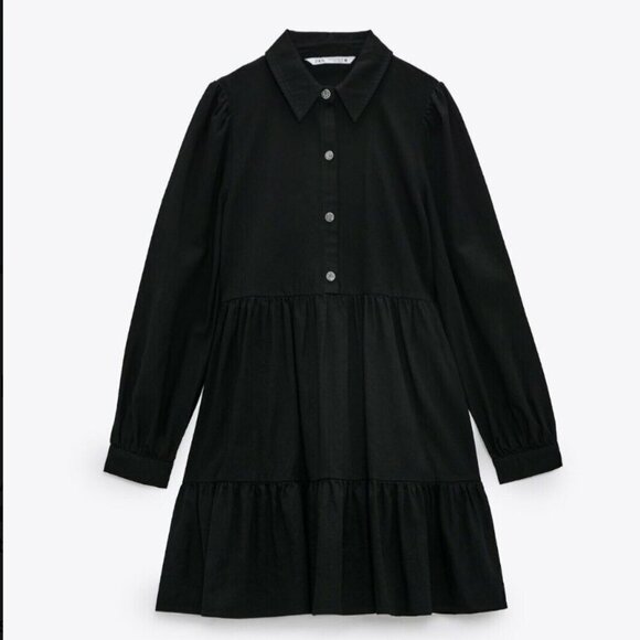 Zara Black Tiered Shirt Dress with Long Sleeves - Size Small NEW WITH TAG!