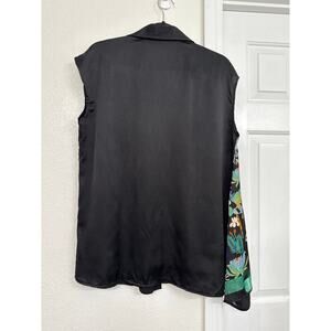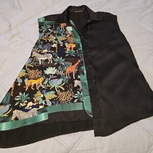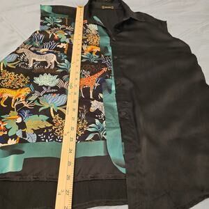 Zara Black Top L Jungle Safari Animal Print Asymmetrical Artcore Blouse SilkFeel