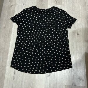 Chic Zara top featuring a playful polka dot design. Black fabric with white spots. Ideal for everyday style.