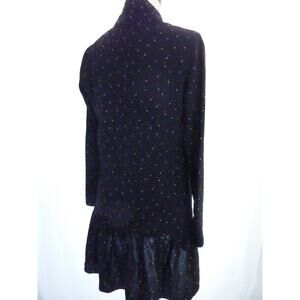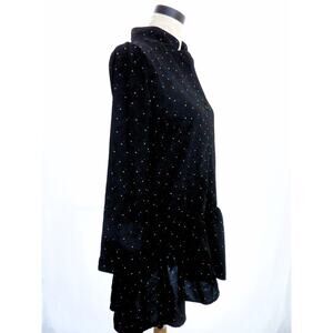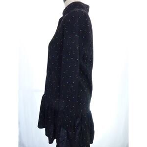 Zara Black Tunic Mini Dress Star Print Button Down Front Long Sleeves Small